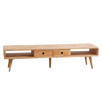 Έπιπλο τηλεόρασης Nextdeco Natural μασίφ ξύλο Υ36,5x150x40εκ. Περιλαμβάνει 2 συρτάρια τα οποία μπορούν να τοποθετηθούν με διάφορους συνδυασμούς, σύμφωνα με