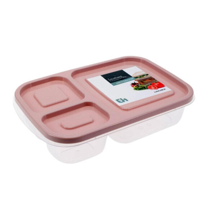 Φαγητοδοχείο από ανθεκτικό πλαστικό, κατάλληλο για οργάνωση τροφίμων, μικροαντικειμένων ή καθημερινών ειδών. Διαθέτει καπάκι με ανάγλυφο σχέδιο τύπου lunchbox, προσφέροντας