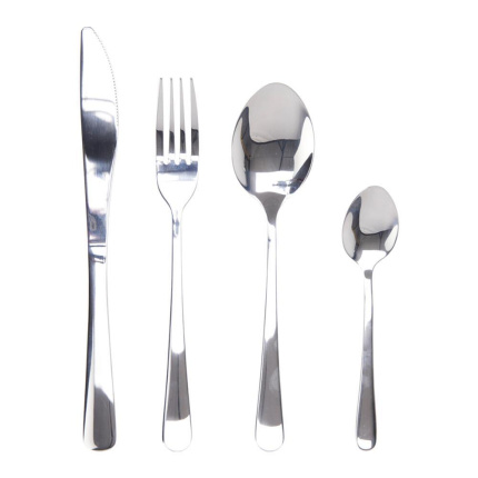 Σετ μαχαιροπίρουνων από ανοξείδωτο ατσάλι ποιότητας 18/0 με γυαλιστερό φινίρισμα, κατάλληλο για καθημερινή χρήση. Το σετ περιλαμβάνει τέσσερα μαχαίρια, τέσσερα