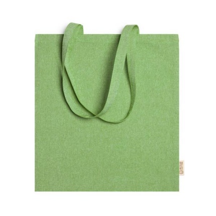 Τσάντα με μακρύ χερούλι, φτιαγμένη από ανακυλωμένο βαμβάκι. Ιδανική για ψώνια. Χρώμα: πράσινο Διαστάσεις 38×42εκ. Δυνατότητα προσωποποίησης για διαφημιστικό, δείτε