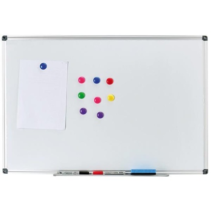 Πίνακας λευκός μαγνητικός. Mε πλαίσιο αλουμινίου και θήκη για μαρκαδόρους. Eξαιρετικής ποιότητας. Διαστάσεις: 90×120εκ.