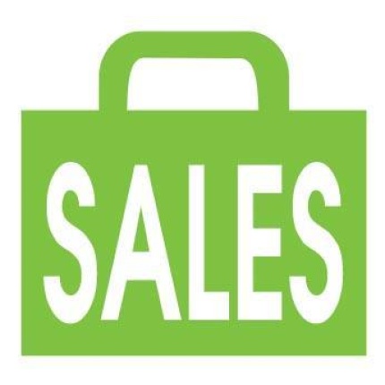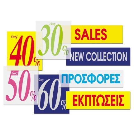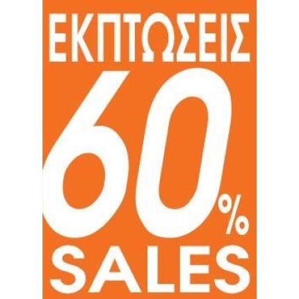 Αφίσα σε σχήμα σακούλας”Sales”. Κοκτέηλ 2 χρώματα. Φωσφορούχο πράσινο και πορτοκαλί. Κολλιούνται εσωτερικά στο τζάμι της βιτρίνας. Διαστάσεις: 34×32εκ.