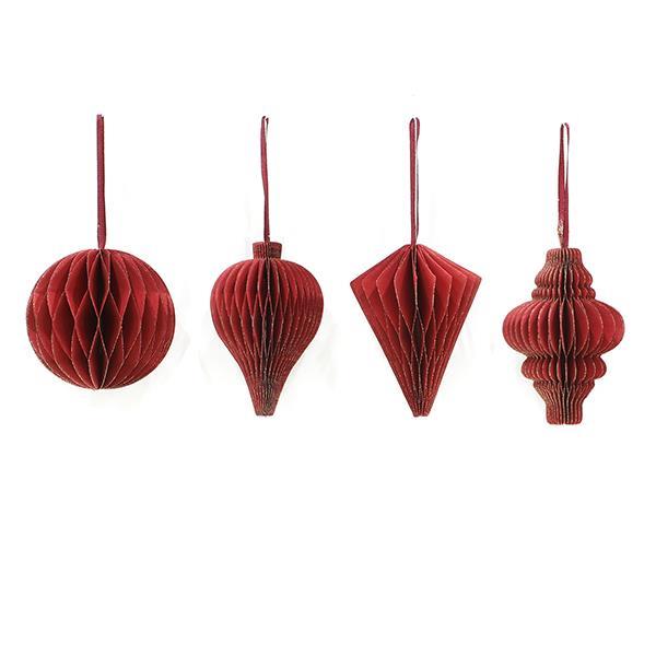 Χριστουγεννιάτικα στολίδια χάρτινα σετ 4 τμχ Ø8-10εκ. κόκκινα