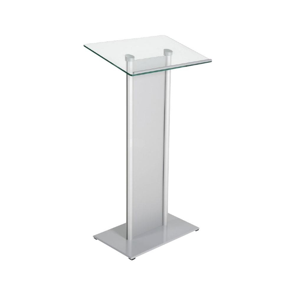 Έδρανο ομιλητή podium αλουμινίου με γυάλινη επιφάνεια – μπροστινό πάνελ Υ111εκ.