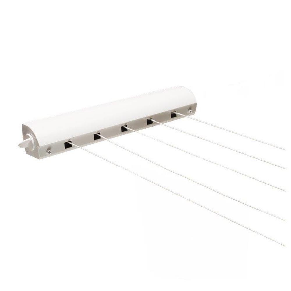 Η επιτοίχια απλώστρα ρούχων Nextdeco είναι η ιδανική λύση για μικρούς χώρους, μπαλκόνια και laundry rooms. Χάρη στον compact σχεδιασμό της, διπλώνει όταν δεν χρησιμοποιείται και καταλαμβάνει ελάχιστο χώρο. Διαθέτει συρόμενα σχοινιά που τραβιούνται εύκολα, προσφέροντας συνολική επιφάνεια απλώματος 21 μέτρων. Η κατασκευή της είναι ανθεκτική και στερεώνεται με βίδες στον τοίχο (περιλαμβάνονται στη συσκευασία).