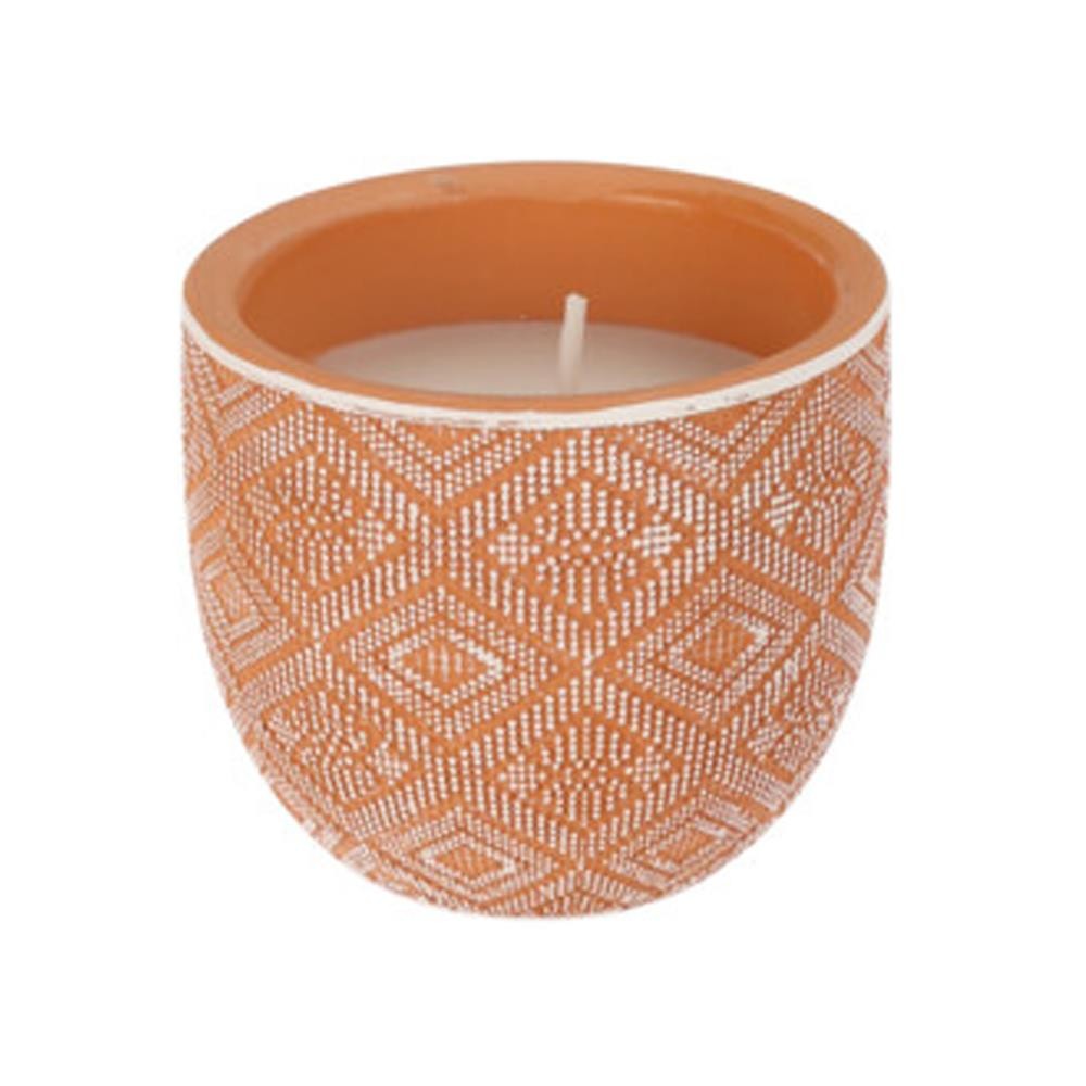 Αρωματικό κερί με άρωμα citronella (3%) από λευκό κερί, τοποθετημένο σε παλαιωμένο κεραμικό γλαστράκι με ανάγλυφο σχέδιο terra diamond. Ιδανικό για καλοκαιρινές βραδιές σε βεράντα ή κήπο — απωθεί τα κουνούπια φυσικά και με στυλ! Χρόνος καύσης: έως 6 ώρες. Βάρος: 45 γρ. Διαστάσεις: Υ7xØ6εκ.