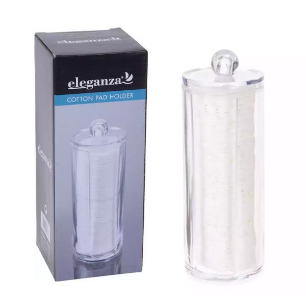 Ακρυλική θήκη για δίσκους ντεμακιγιάζ με καπάκι. Σας βοηθά, να αποθηκεύετε τους δίσκους, προστατεύοντάς τους από τη σκόνη αλλά και κάνει το μπάνιο σας να φαίνεται πιο τακτοποιημένο.