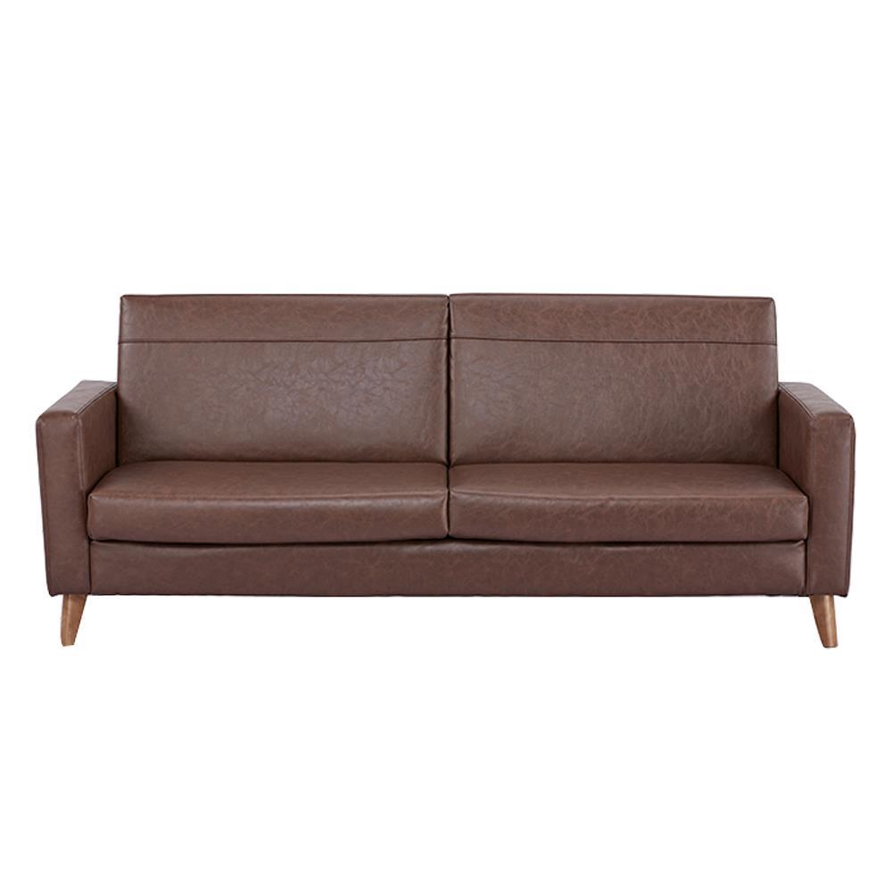 Καναπές κρεβάτι τριθέσιος Nextdeco Soho καφέ Υ81x201x90εκ., με ποιοτική καφέ δερματίνη και ξύλινα πόδια.