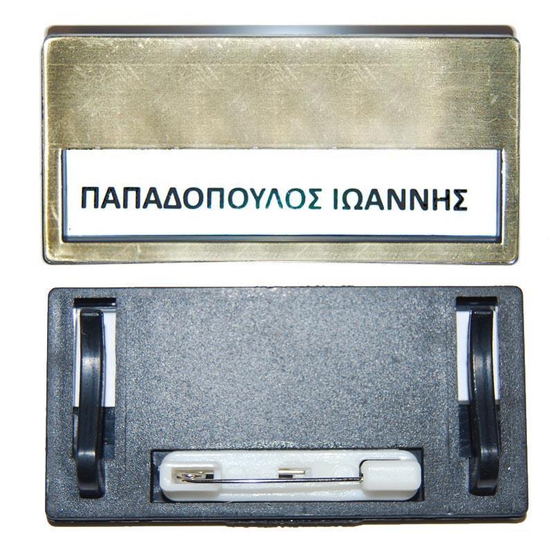 Καρτελάκι ονόματος (κονκάρδα συνεδρίων) με καρφίτσα.