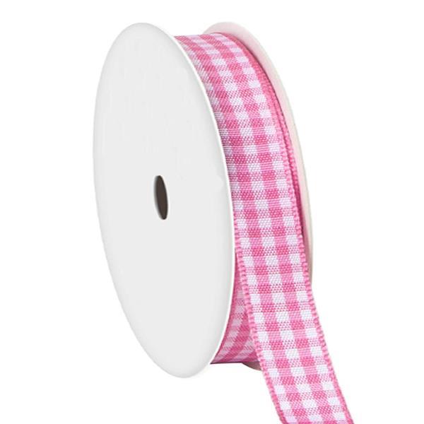 Κορδέλα καρώ με ούγια ροζ15mm ρολό 45μ.
