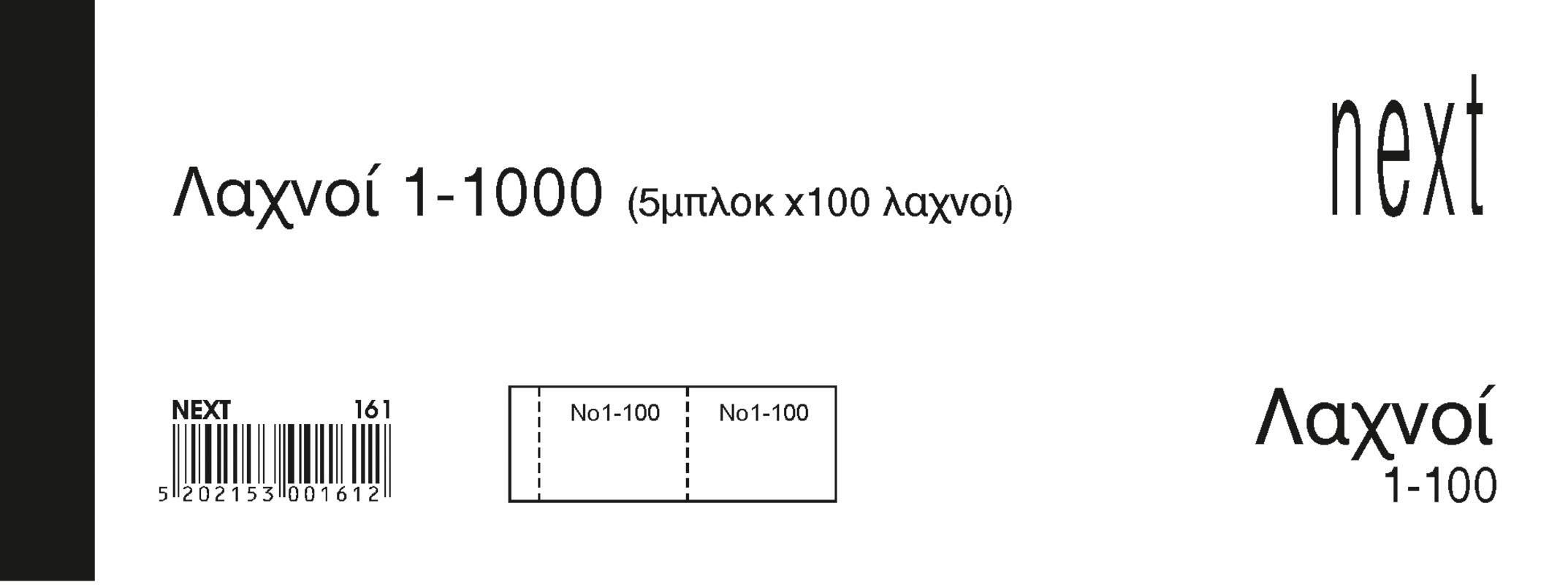 Λαχνοί 01-1000 από απλό χαρτί σε λευκό χρώμα με περφορέ στη μέση και αρίθμηση.