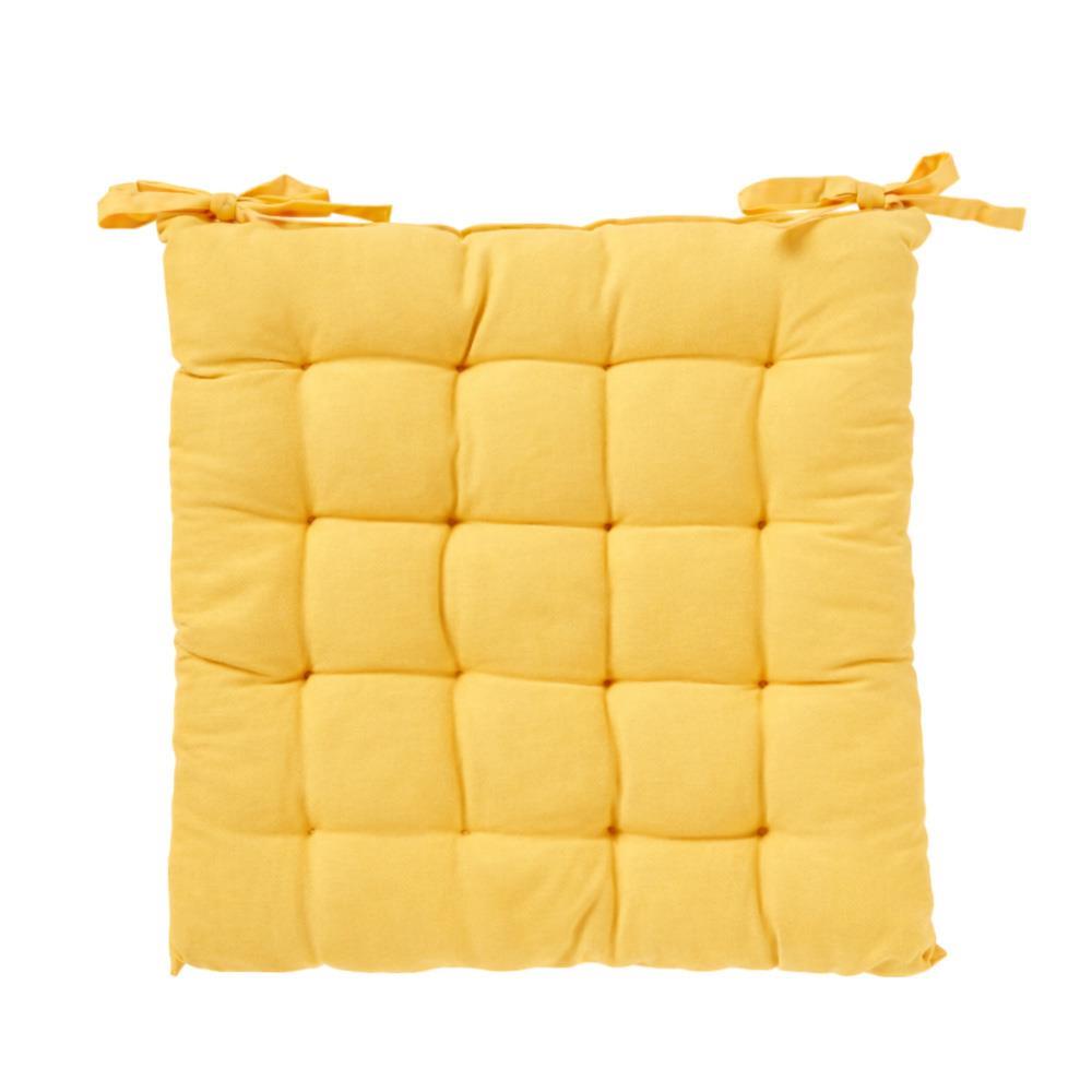 Τετράγωνο μαξιλάρι καρέκλας από πολυεστέρα με πρακτικά δεσίματα για σταθερή τοποθέτηση. Διαθέτει γέμιση από ανακυκλωμένο βαμβάκι, προσφέροντας άνετη και σταθερή υποστήριξη για καθημερινή χρήση. Κατάλληλο για καρέκλες τραπεζαρίας, κουζίνας ή εξωτερικών χώρων, συνδυάζει λειτουργικότητα και ανθεκτικότητα.