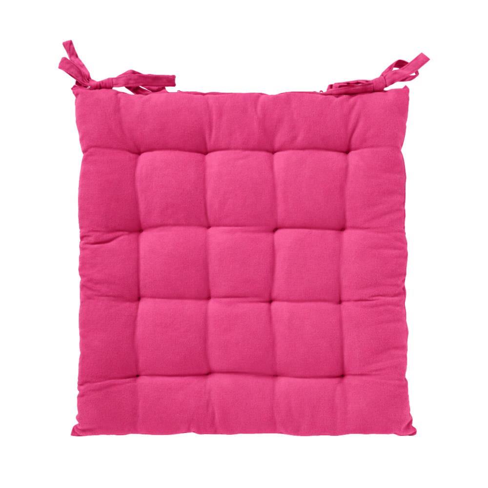 Τετράγωνο μαξιλάρι καρέκλας από πολυεστέρα με πρακτικά δεσίματα για σταθερή τοποθέτηση. Διαθέτει γέμιση από ανακυκλωμένο βαμβάκι, προσφέροντας άνετη και σταθερή υποστήριξη για καθημερινή χρήση. Κατάλληλο για καρέκλες τραπεζαρίας, κουζίνας ή εξωτερικών χώρων, συνδυάζει λειτουργικότητα και ανθεκτικότητα.