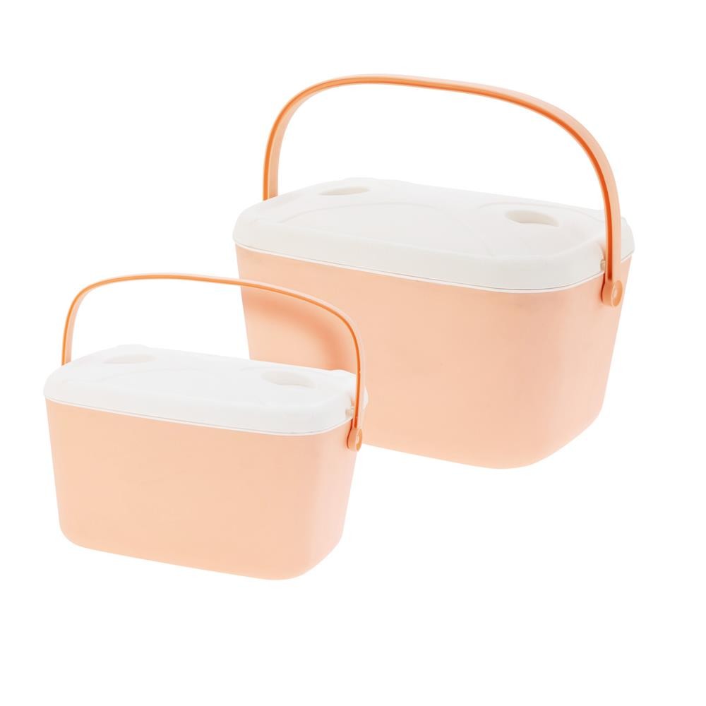 Ανθεκτικό και πρακτικό σετ 2 ψυγείων μεταφοράς σε ροζ χρώμα – 30 λίτρα και 15 λίτρα – ιδανικό για την παραλία, το κάμπινγκ, τις εκδρομές ή τα ψώνια.Από PP-PE-EPS (πολυπροπυλένιο, πολυαιθυλένιο και διογκωμένη πολυστερίνη).Μόνωση: Εσωτερική στρώση styrofoam 1cm για διατήρηση της δροσιάς. Λευκό καπάκι με ανάγλυφο σχέδιο “COOL”, τεχνολογία blow mould. Χρώμα: Ροζ.