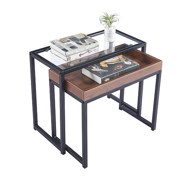 Τραπεζάκια βοηθητικά σετ2 Nextdeco μέταλλο με γυαλί και MDF Υ50x60x30εκ. – Υ47x56x30εκ.