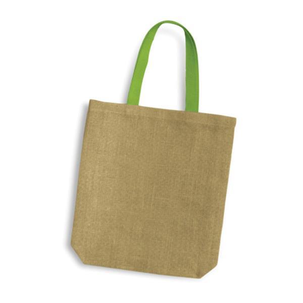 Τσάντα, Y38x8x38εκ από γιούτα/λινάτσα με πράσινες λαβές