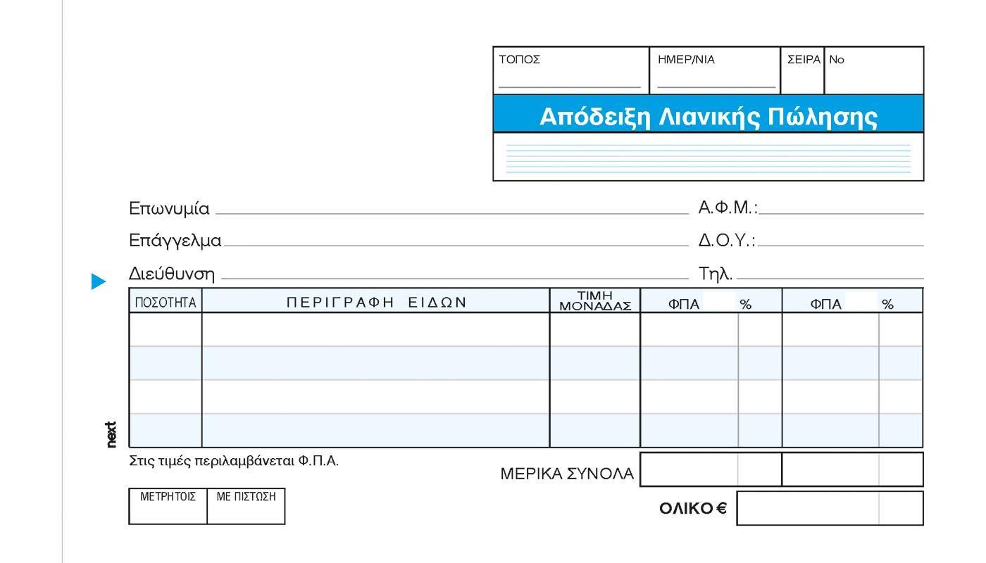 Next απόδειξη Λιανική Πώλ. 2φπα 2×50φ.10×17εκ.