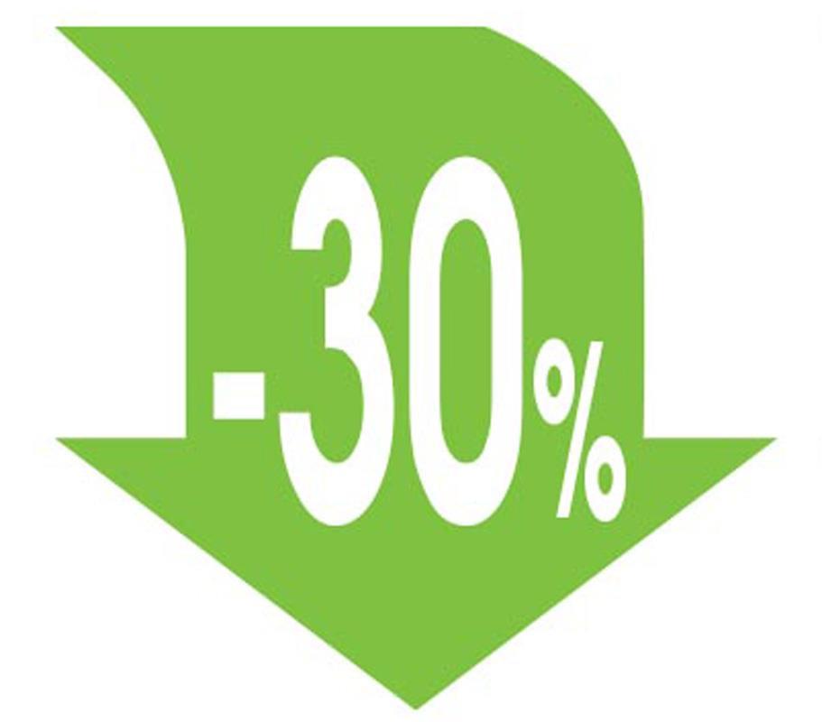Αφίσα σε σχήμα βέλος “-30%”.