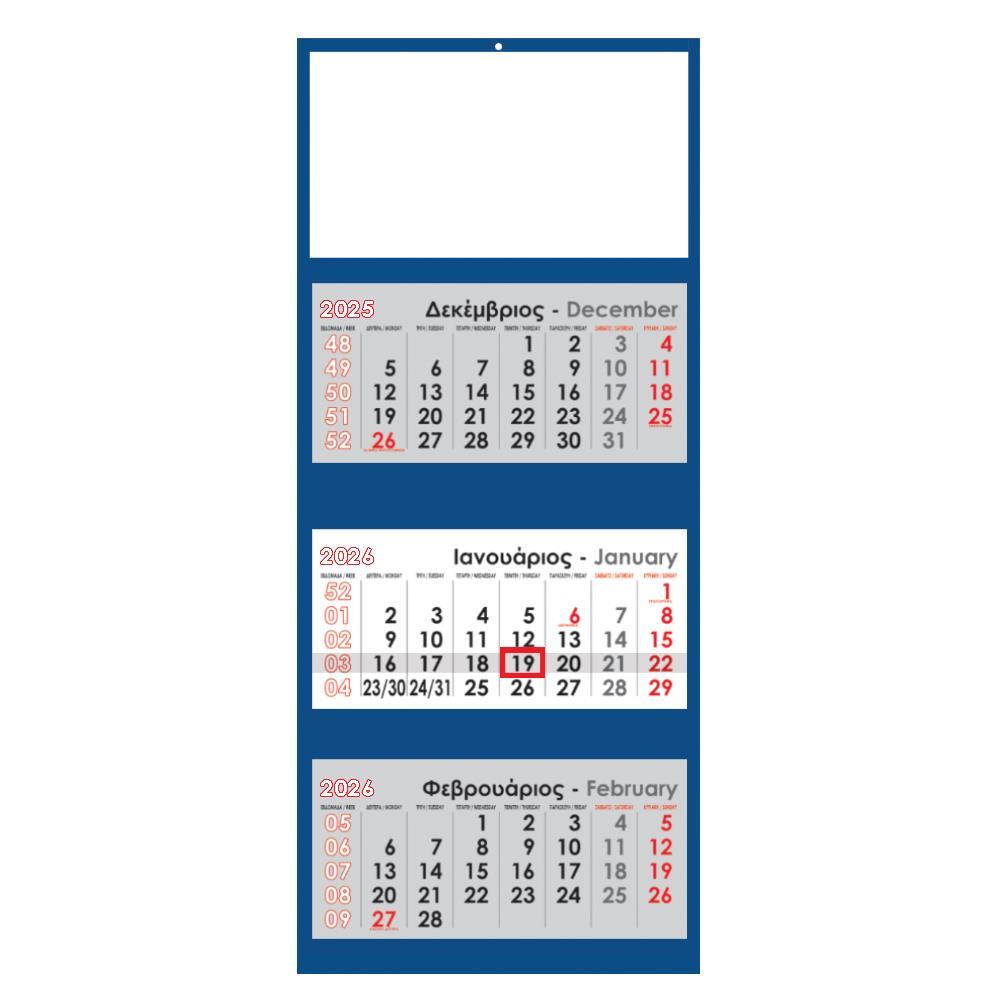 Next ημερολόγιο τοίχου 2026 τριμηνιαίο μπλε 34×80εκ.